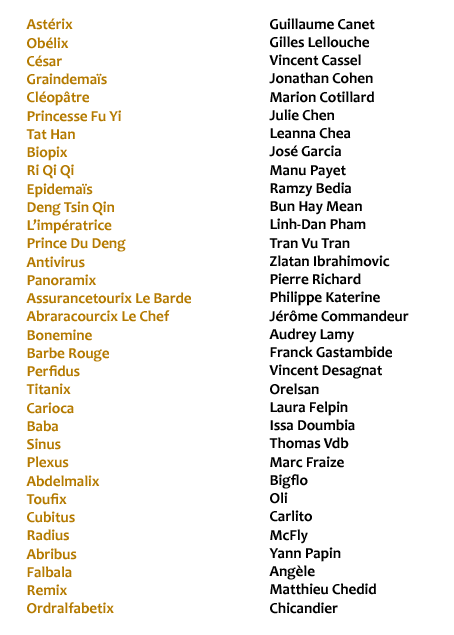 Nous sommes en 50 avant J.C. L’Impératrice de Chine est emprisonnée suite à un coup d’état fomenté par Deng Tsin Quin, un prince félon. Aidée par Graindemaïs, le marchand phénicien, et par sa fidèle guerrière Tat Han, la princesse Fu-Yi, fille unique de l’impératrice, s’enfuit en Gaule pour demander de l’aide aux deux valeureux guerriers Astérix et Obélix, dotés d’une force surhumaine grâce à leur potion magique. Nos deux inséparables Gaulois acceptent bien sûr de venir en aide à la Princesse pour sauver sa mère et libérer son pays. Et les voici tous en route pour une grande aventure vers la Chine. Mais César et sa puissante armée, toujours en soif de conquêtes, ont eux aussi pris la direction de l’Empire du Milieu… |